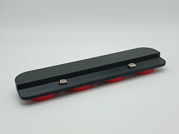 Klik de cups in de houder en schuif ze over de rail terwijl je tuigt.
