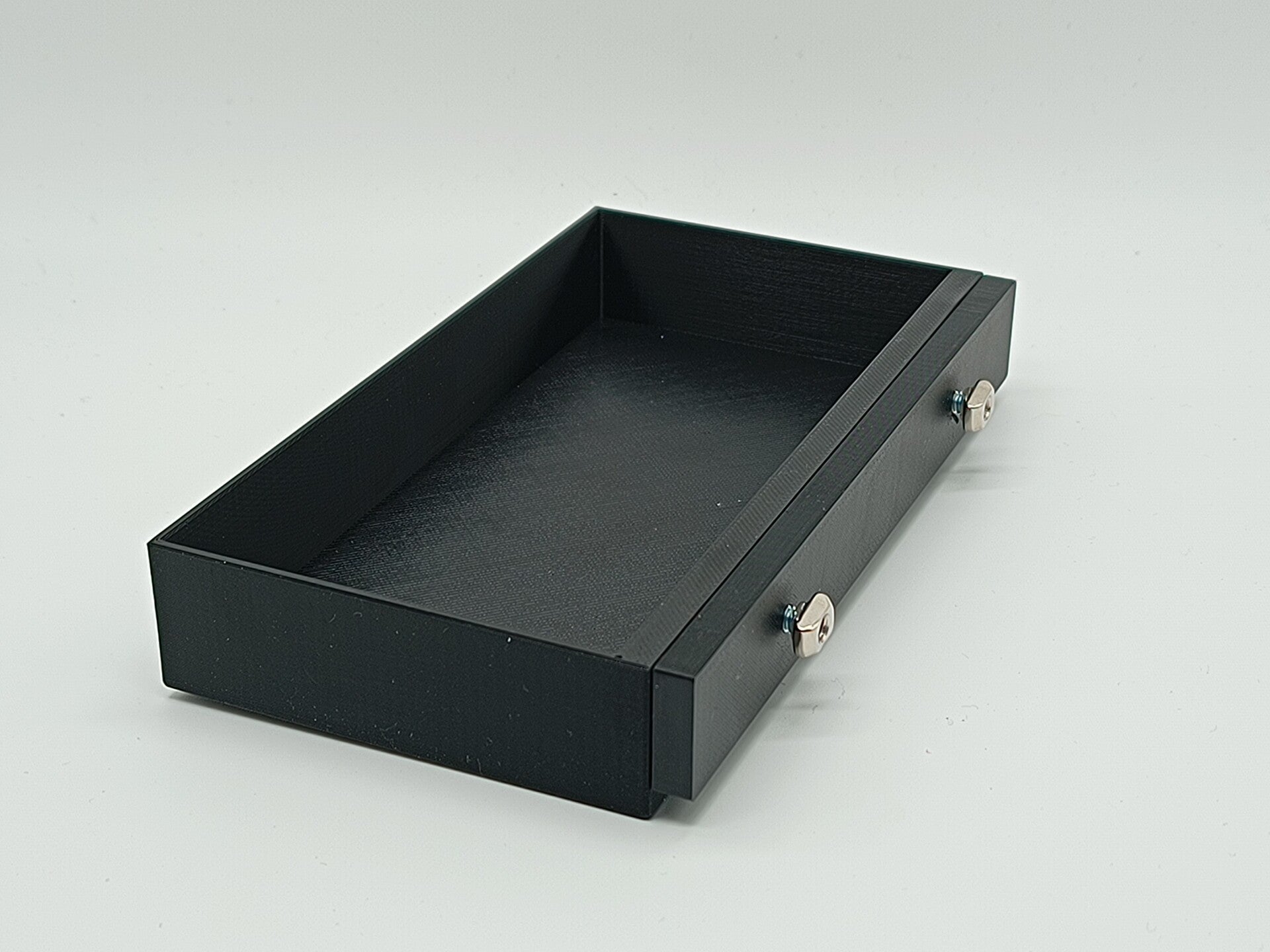 Het bakje heeft dezelfde uitstraling en afwerking als de RigX, waardoor het één strak geheel vormt.